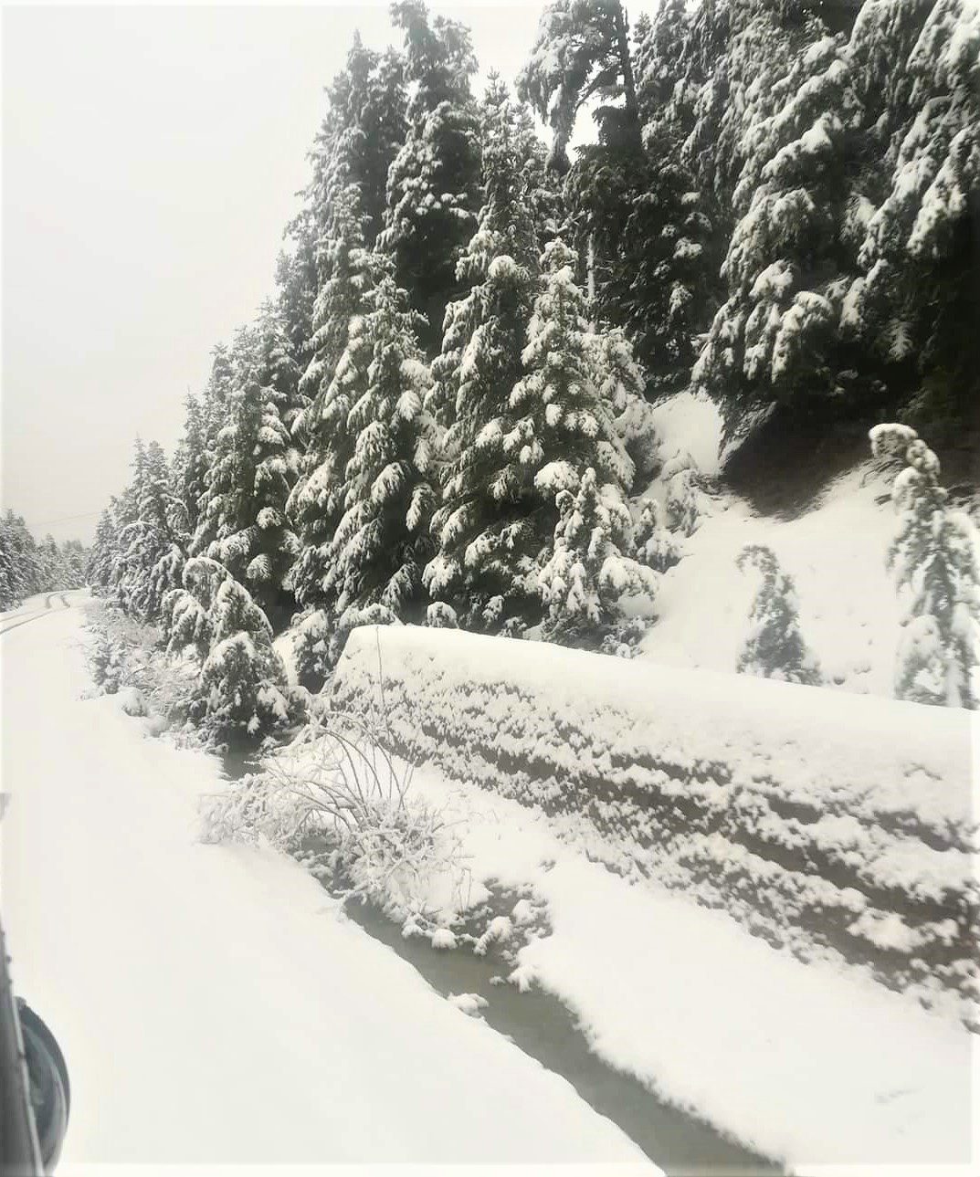 Αντίθετα η ορεινή άσπρισε με το αρκετό χιόνι που έπεσε και συνεχίζεται να πέφτει.