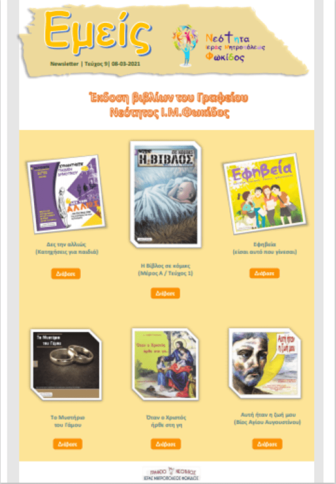 Βιβλία από Γραφείο Νεότητας Ι. Μητρόπολης Φωκίδας ΚΟΙΝΩΝΙΚΑ Από doridanews Στις Μαρ 10, 2021 Share - Διαφήμιση -Χρόνος ανάγνωσης: 1 λεπτό Συνεχίστε να διαβάσετε- Διαφήμιση - Share
