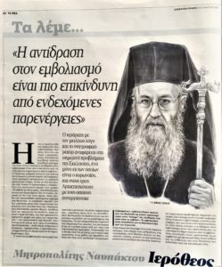 Συνέντευξη Μητροπολίτη Ναυπάκτου Ιερόθεου στην εφημερίδα ΤΑ ΝΕΑ