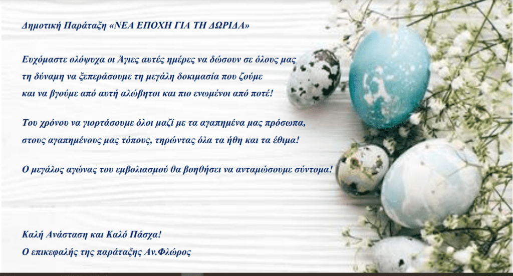 Ευχές για το Πάσχα από τον Αναστάσιο Φλώρο ΚΟΙΝΩΝΙΚΑ Από doridanews Στις Απρ 26, 2021 Share - Διαφήμιση -Χρόνος ανάγνωσης: 1 λεπτό Συνεχίστε να διαβάσετε- Διαφήμιση - Share