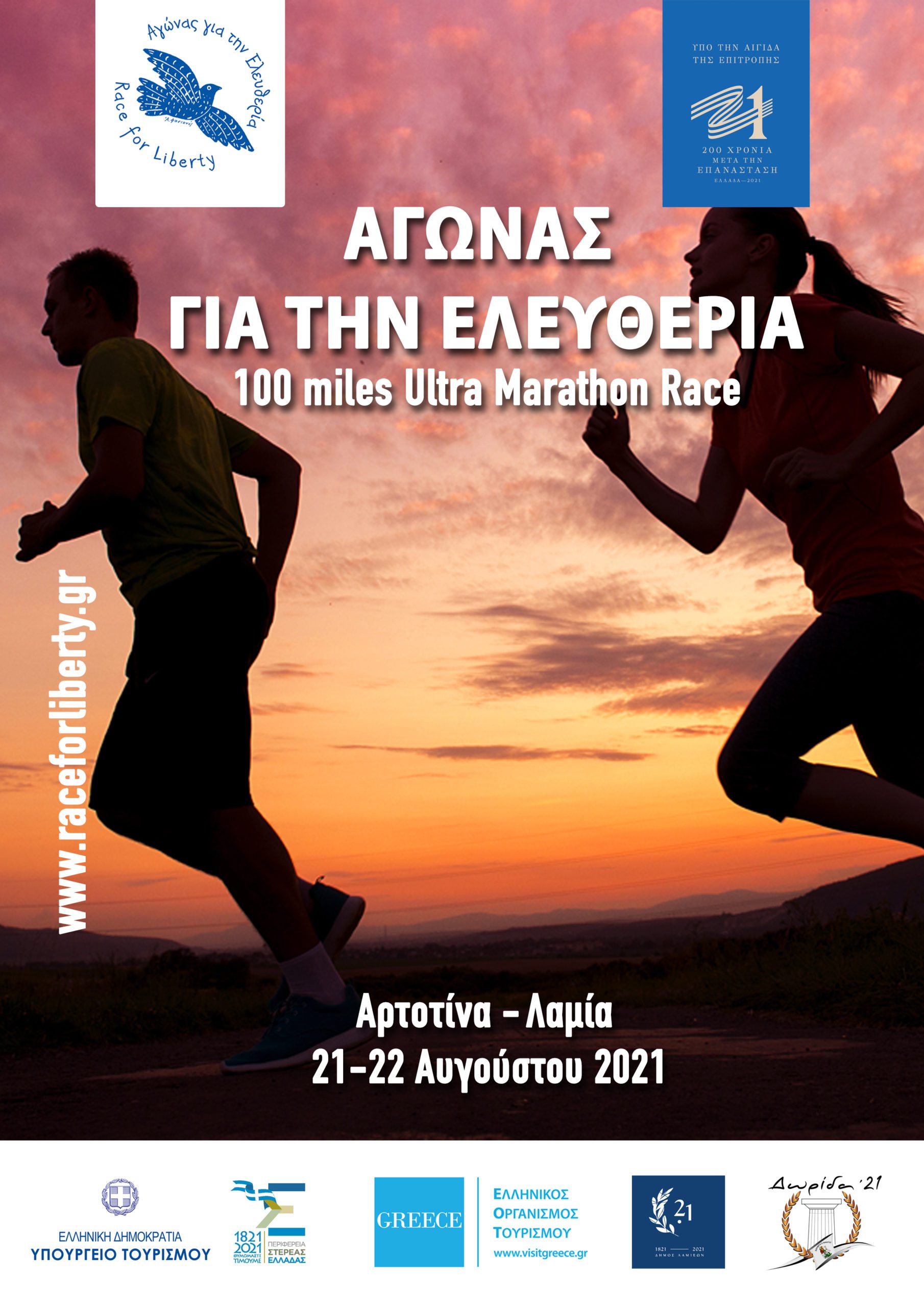 Ο ΑΓΩΝΑΣ ΓΙΑ ΤΗΝ ΕΛΕΥΘΕΡΙΑ απευθύνεται σε Υπερ-Αθλητές, από την Ελλάδα και το εξωτερικό, που μπορούν να τρέξουν 100 μίλια (168 χιλιόμετρα) και συμβολίζει την τεράστια Υπερ-προσπάθεια των Αγωνιστών του ‘21 που ξεκίνησαν από την Φωκίδα και την Φθιώτιδα (Αθανάσιος Διάκος, Ιωάννης Μακρυγιάννης, Δήμος Σκαλτσάς, Οδυσσέας Ανδρούτσος, Ιωάννης Γκούρας, Αντώνης Κοντοσόπουλος και πολλοί άλλοι) με στόχο και ιδανικό τους την Ελεύθερη Ελλάδα. Συμβολίζει και τον υπερ-πατριωτισμό τους, αφού δεν δίστασαν να θυσιάσουν την ίδια τους τη ζωή, προκειμένου να ζούμε σήμερα εμείς ελεύθεροι.