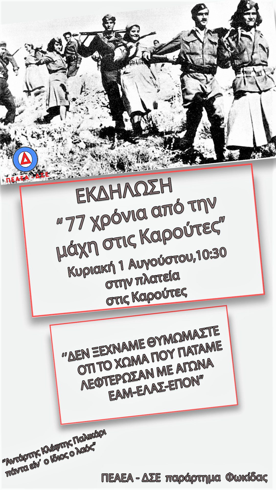 Για να τιμήσουμε την επέτειο της ομώνυμης μάχης και τους αθάνατους νεκρούς μας, του ΕΑΜ – ΕΛΑΣ, που έπεσαν μαχόμενοι στις 5-8-1944, κατά της τότε νέας τάξης, των Ναζί Γερμανών κατακτητών της πατρίδας μας.
