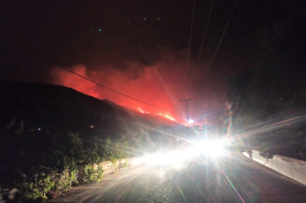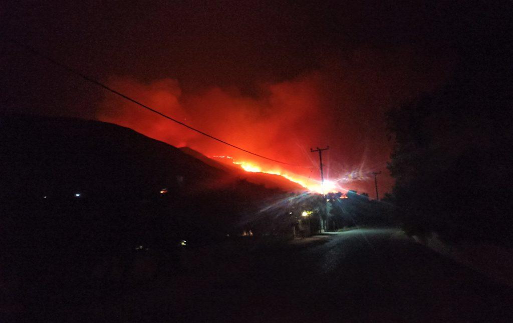 Εφιαλτική νύχτα ζουν μια σειρά από χωριά της Δωρίδας από την πύρινη κόλαση της πυρκαγιάς που ξέσπασε το μεσημέρι κοντά στο Βελενίκο (Ελαία) και προχωρά ακάθεκτη προς τα ανατολικά σε μια πορεία 15 χιλιομέτρων που συνεχίζεται.