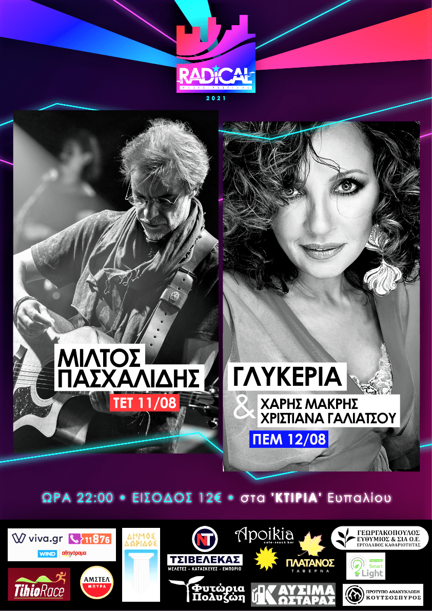 Η Ομάδας Διαχείρισης του ΔΩΡΙΣ Radical έδωσε στη δημοσιότητα χρηστικές πληροφορίες για την οργάνωση και διεξαγωγή του RADICAL ΦΕΣΤΙΒΑΛ στα Κτίρια Ευπαλίου αύριο και μεθαύριο με τους Μίλτο Πασχαλίδη και την Γλυκερία.