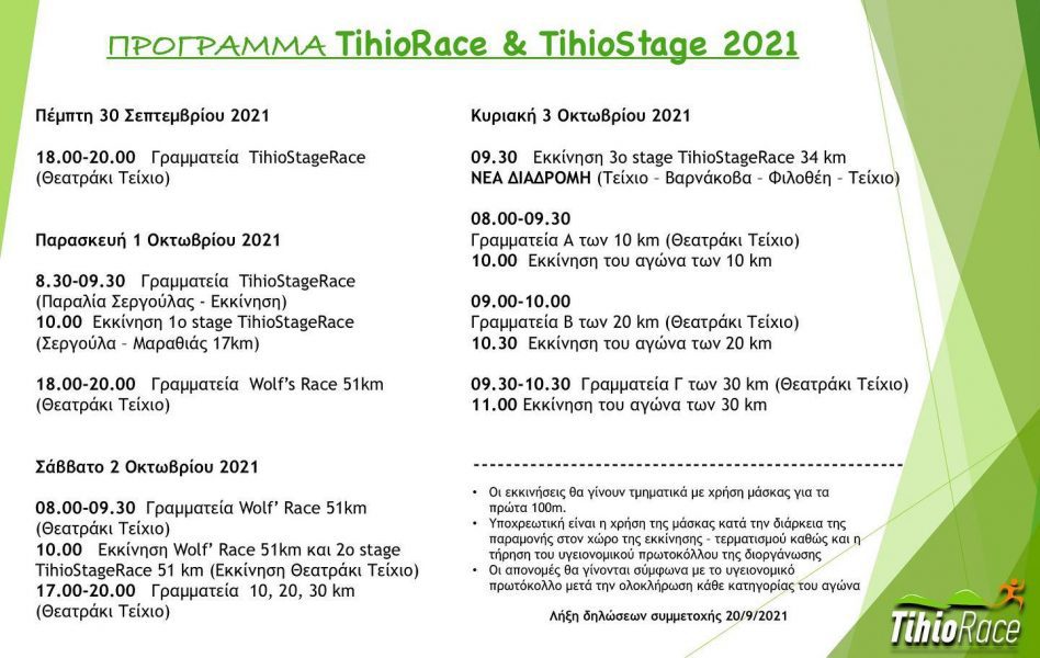 Την 1η Οκτωβρίου ξεκινούν οι φθινοπωρινοί αγώνες 2021 του Tihio Race με μεγάλο πανελλήνιο ενδιαφέρων.