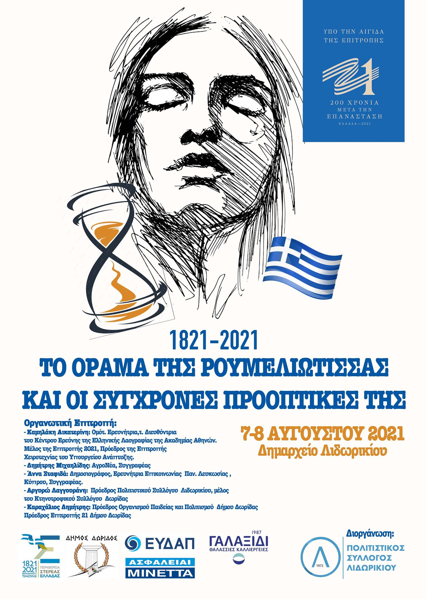 Το Σάββατο 18 Σεπτεμβρίου 2021, μετά την αναβολή λόγω πυρκαγιών, οργανώνετε από τον Πολιτιστικό Σύλλογο Λιδωρικίου το Συνέδριο «1821-2021, το ΟΡΑΜΑ της Ρουμελιώτισσας και οι σύγχρονες προοπτικές της» στο Λιδωρίκι (Δημαρχείο Δωρίδας).