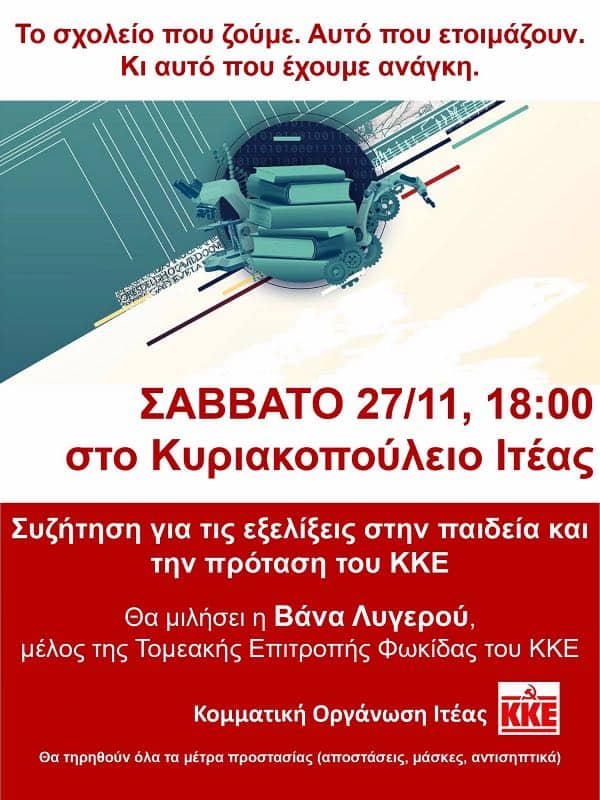 Εκδήλωση του ΚΚΕ στην Ιτέα για την παιδεία ΠΟΛΙΤΙΚΑ Από doridanews Στις Νοέ 23, 2021 Share - Διαφήμιση -Χρόνος ανάγνωσης: 1 λεπτό Συνεχίστε να διαβάσετε- Διαφήμιση - Share