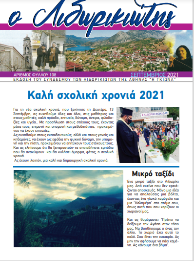 Κυκλοφόρησε ηλεκτρονικά με πλούσια ύλη το τελευταίο τεύχος της εφημερίδας “ο Λιδωρικιώτης” που εκδίδει ο Σύνδεσμος Λιδωρικιωτών Αθήνας  “Η Γκιώνα”.
