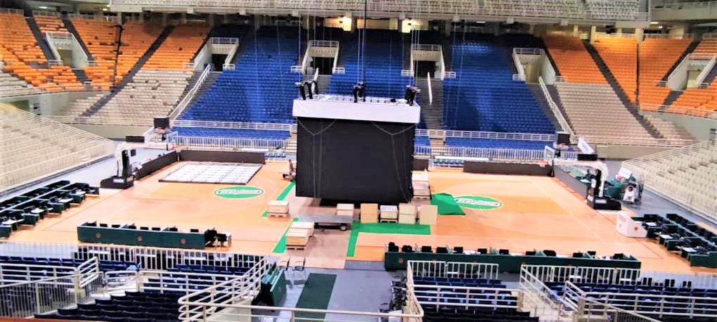Σε συνεργασία με την ΚΑΕ ΠΑΟ αναβλήθηκε ο σημερινός αγώνας μεταξύ ΚΑΕ ΠΑΟ και ΚΑΕ ΗΡΑΚΛΗΣ, κατέβηκε ο ηλεκτρονικός πίνακας οροφής (CUBE) που στηρίζεται στην οροφή του κλειστού και ζυγίζει πάνω από 8 τόνους, ώστε να αποφορτιστεί η στέγη λόγω της συνεχιζόμενης χιονόπτωσης.