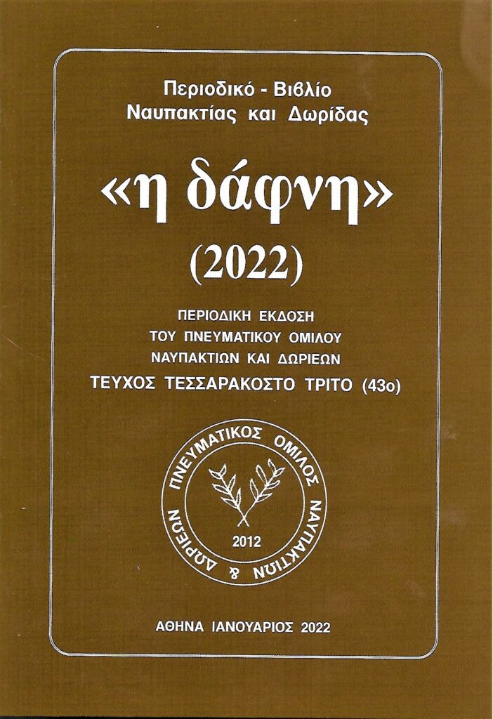 Στην εκδήλωση θα παρουσιαστεί το τελευταίο 43ο ετήσιο τεύχος του περιοδικού-βιβλίου “η δάφνη” που μόλις κυκλοφόρησε, περισσότερο πλούσιο από κάθε άλλη φορά, καθόσον αποτελείται από 288 σελίδες.