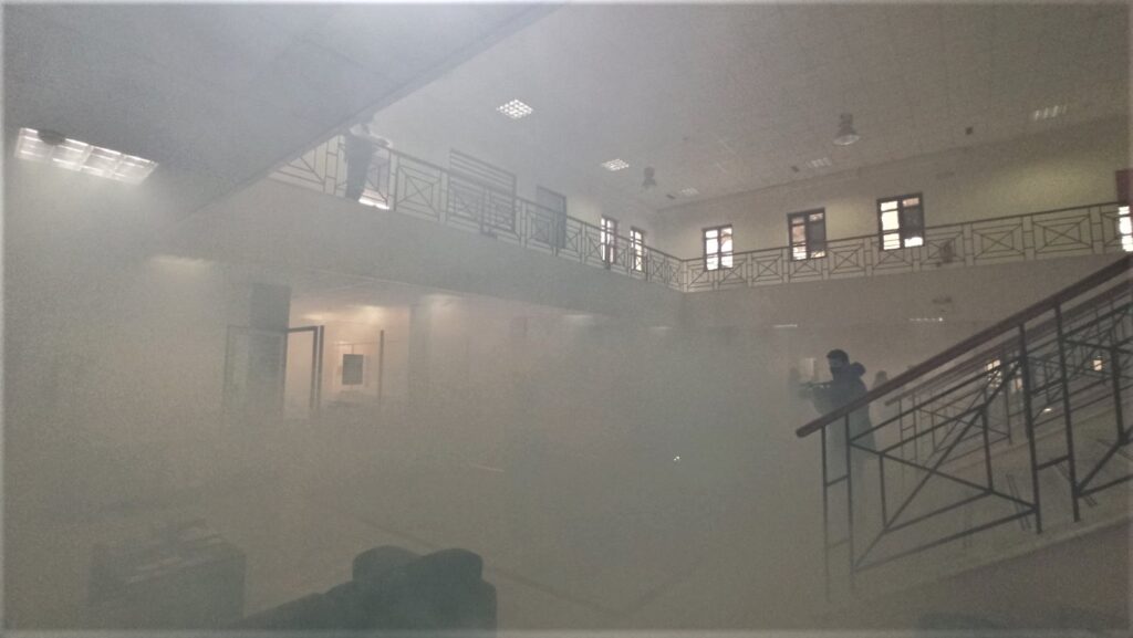 Ή άσκηση σύμφωνα με το σενάριο προέβλεπε ότι μετά από σεισμό που έγινε, προκλήθηκε πυρκαγιά στο κτίριο και πραγματοποιήθηκε επιχείρηση απεγκλωβισμού ατόμου με αναπνευστικά προβλήματα το οποίο παρελήφθη από ασθενοφόρο του ΕΚΑΒ και μεταφέρθηκε στο νοσοκομείο.