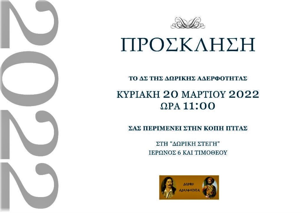 Κυριακή 20 Μαρτίου η πίτα της Δωρικής Αδελφότητας