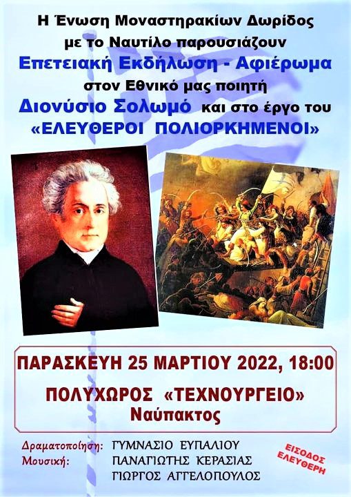 ΣΟΛΩΜΟΣ &”ΕΛΕΥΘΕΡΟΙ ΠΟΛΙΟΡΚΗΜΕΝΟΙ” : Επετειακή εκδήλωση των Συλλόγων του Μοναστηρακίου Δωρίδας ΚΟΙΝΩΝΙΚΑ Από doridanews Στις Μαρ 23, 2022 Share - Διαφήμιση -Χρόνος ανάγνωσης: 1 λεπτό Συνεχίστε να διαβάσετε- Διαφήμιση - Share