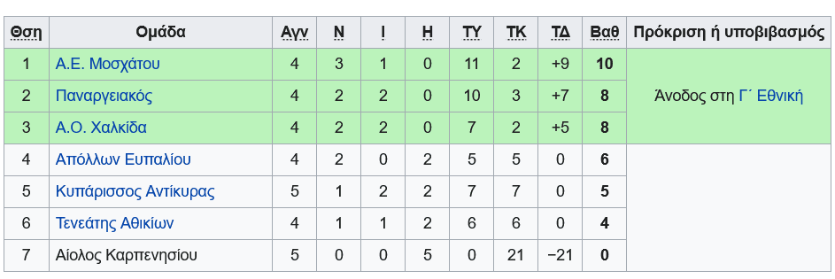 Βαθμολογία 5η αγωνιστική