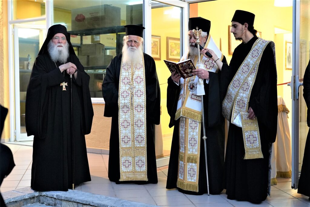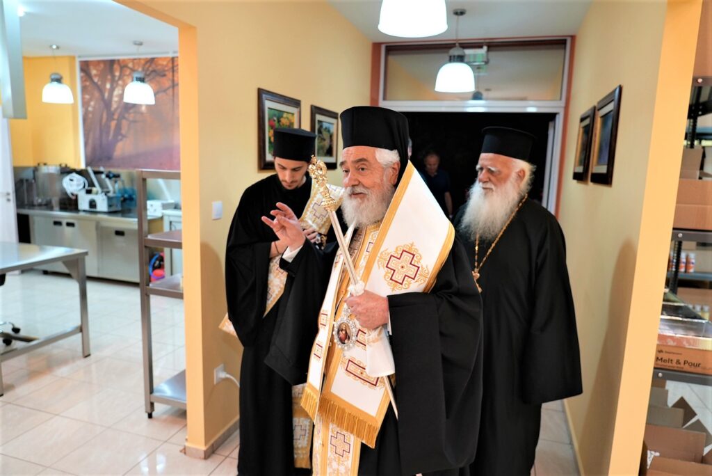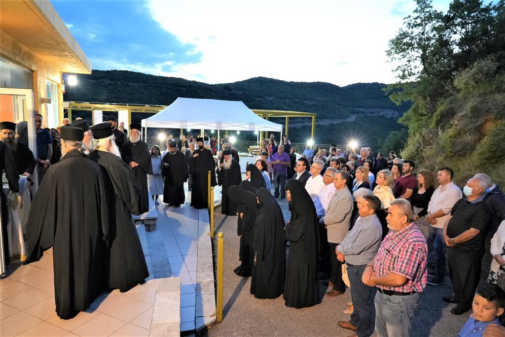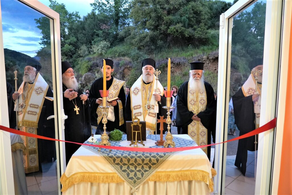 Η δεύτερη ευλογία ακολούθησε μετά την ακολουθία του Εσπερινού, όπου ο Μητροπολίτης τέλεσε την ακολουθία του Αγιασμού και εγκαινίασε τον νέο χώρο διακονημάτων – εργαστηρίων που βρίσκεται πλησίον του Ιερού Ησυχαστηρίου μας.