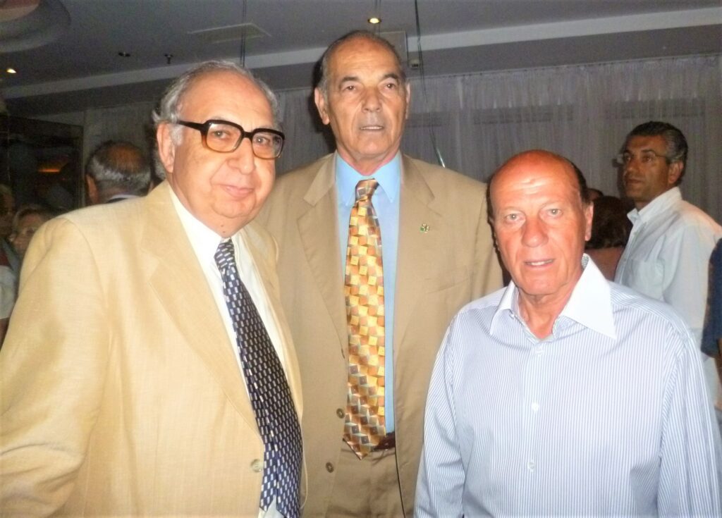 Στη φωτογραφία (του Ιουλίου 2013) ενώ συμμετέχω σε συζήτηση με δύο από τους πρωταγωνιστές του τελικού του 1971, τον Αντώνη Αντωνιάδη και τον ηγέτη του Π.Α.Ο. Μίμη Δομάζο.