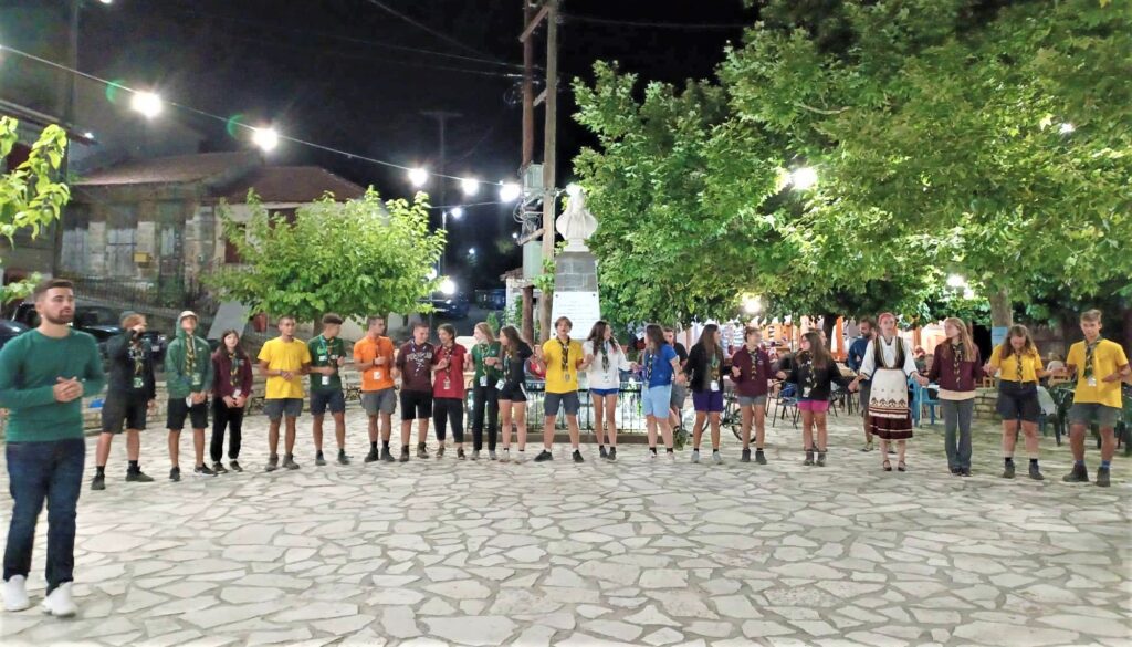 Το βράδυ στην πλατεία του χωριού πραγματοποιήθηκε παρουσίαση για τους τοπικούς παραδοσιακούς χορούς και τις τοπικές φορεσιές. Στη συνέχεια σύσσωμοι οι πρόσκοποι πιάστηκαν στο χορό γεμίζοντας την πλατεία της Αρτοτίνας χαμόγελα, κέφι και ζωντάνια.