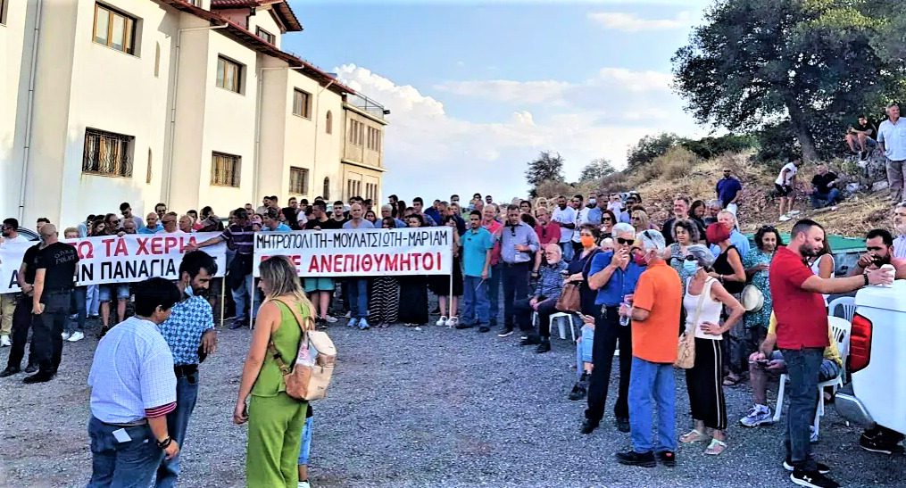 Προχθές 22 Αυγούστου οι κάτοικοι προχώρησαν σε ειρηνική διαμαρτυρία, παραμονή της Παναγίας, έξω από το Μοναστήρι μετά από κάλεσμα της Επιτροπής Αγώνα που έχουν συστήσει.