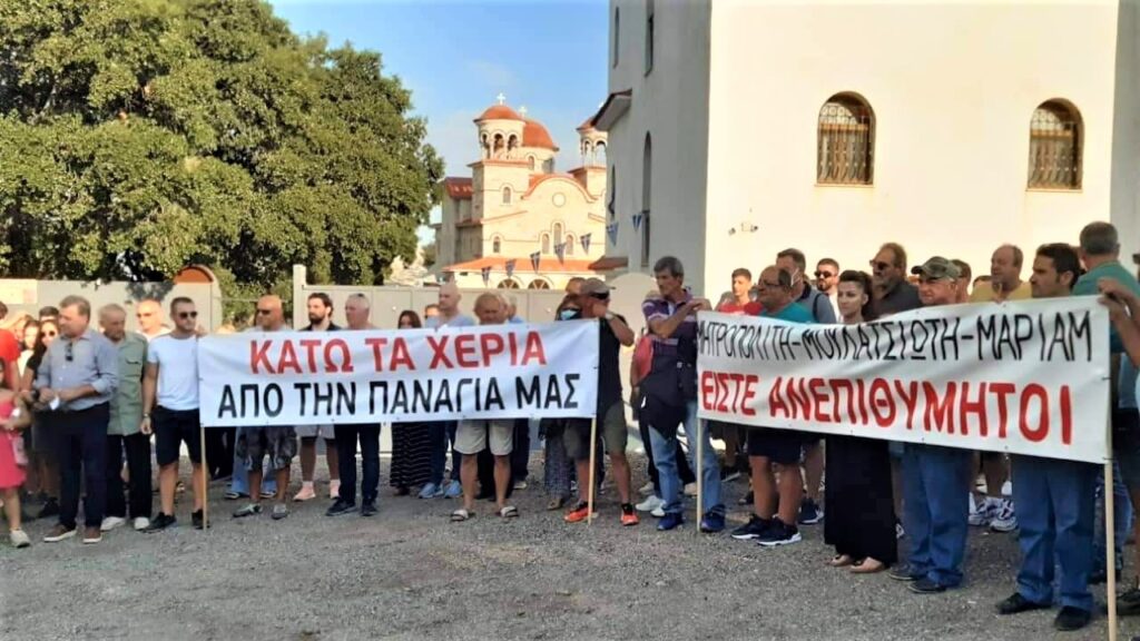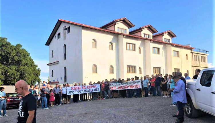 Προχθές 22 Αυγούστου οι κάτοικοι προχώρησαν σε ειρηνική διαμαρτυρία, παραμονή της Παναγίας, έξω από το Μοναστήρι μετά από κάλεσμα της Επιτροπής Αγώνα που έχουν συστήσει.