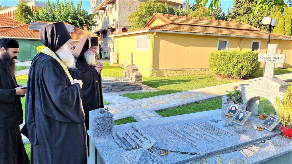 Ο άγιος Καθηγούμενος Γέροντας Εφραίμ μετά της συνοδείας του φιλοξενήθηκε με αγάπη στην ανδρώα Ιερά Μονή του Γέροντά μας π. Νεκταρίου, όπου τέλεσε και ιερό τρισάγιο στη Γερόντισσα Παϊσία.