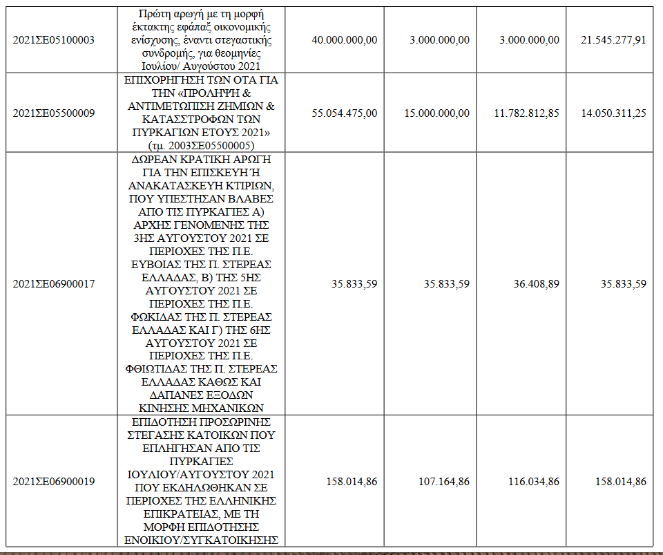 Ειδικότερα στην απάντηση, την οποία υπογράφει ο Γενικός Γραμματέας Δημοσίων Επενδύσεων και ΕΣΠΑ Δημήτρης Σκάλκος, ως προς τις καταβολές αποζημιώσεων και σχετικών χρηματοδοτήσεων, παραθέτει τα εξής αναλυτικά στοιχεία: