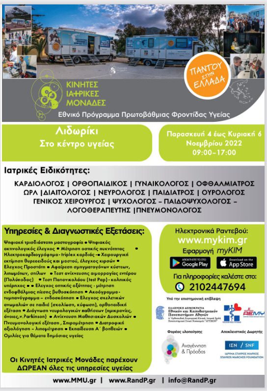 4-6 Νοεμβρίου οι κινητές ιατρικές μονάδες στο Λιδωρίκι