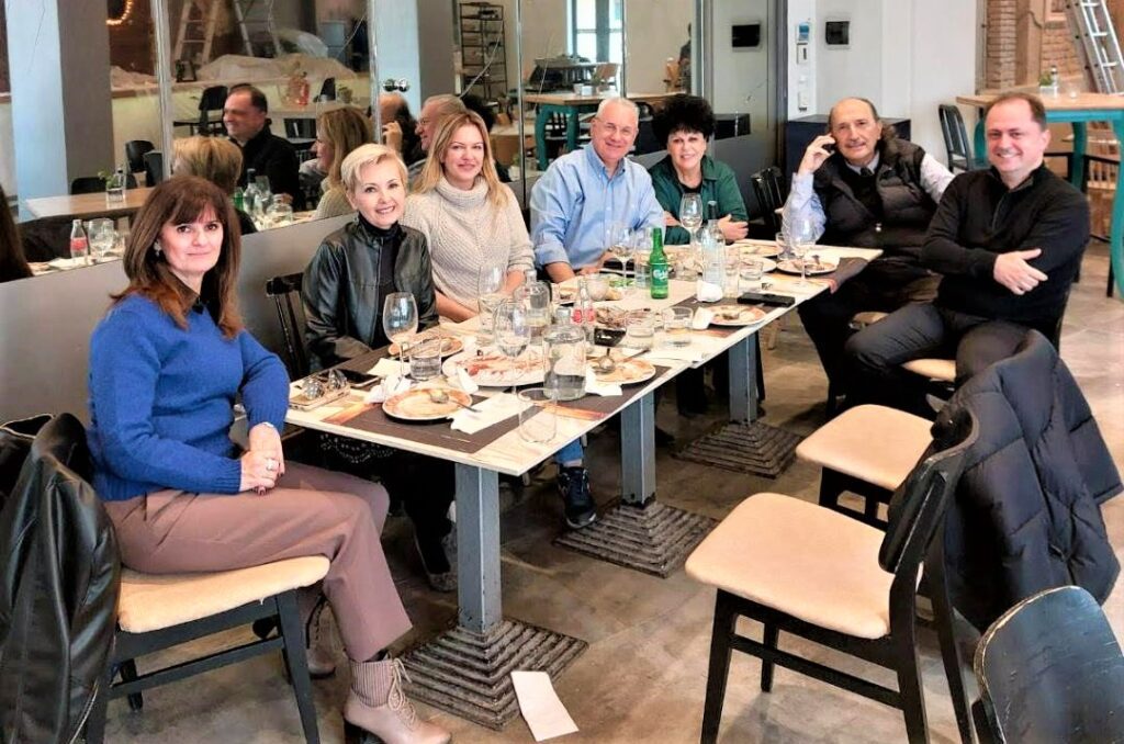 Στη Λιβαδειά γευμάτισε με τον  τ. Δήμαρχο Άρη Ρούσσαρη, τον τ. Πρόεδρο ΝΟΔΕ Γιώργο Λιανό, τα στελέχη της Πολεοδομίας Κική Μαχαίρα και Ελένη Καλπούζου.