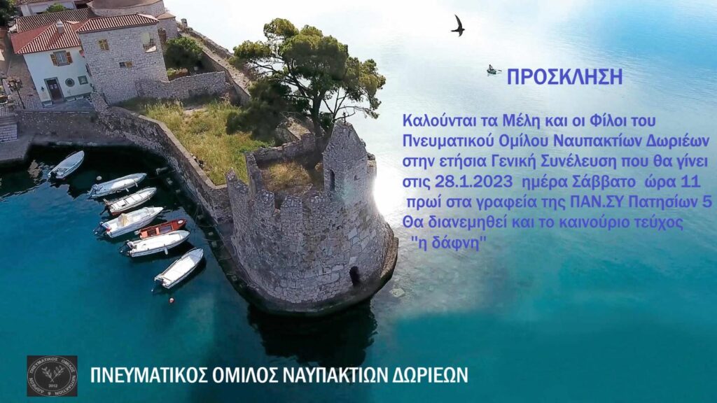 Γενική Συνέλευση του Πνευματικού Ομίλου Ναυπακτίων Δωριέων – Παρουσίαση του νέου περιοδικού “η δάφνη” ΚΟΙΝΩΝΙΚΑ Από doridanews Στις Ιαν 25, 2023 Share - Διαφήμιση -Χρόνος ανάγνωσης: 1 λεπτό Συνεχίστε να διαβάσετε- Διαφήμιση - Share