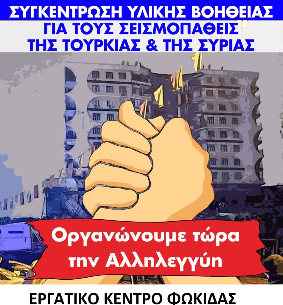 Οργανώνουμε τώρα την Αλληλεγγύη με τους δοκιμαζόμενους λαούς της Τουρκίας και της Συρίας