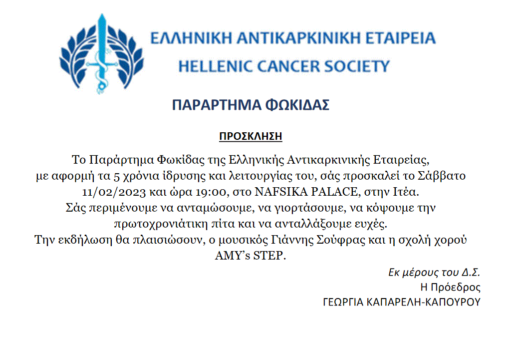 Πίτα 2023 Ελληνικής Αντικαρκινικής Εταιρείας Φωκίδας ΚΟΙΝΩΝΙΚΑ Από doridanews Στις Φεβ 3, 2023 Share - Διαφήμιση -Χρόνος ανάγνωσης: 1 λεπτό Συνεχίστε να διαβάσετε- Διαφήμιση - Share