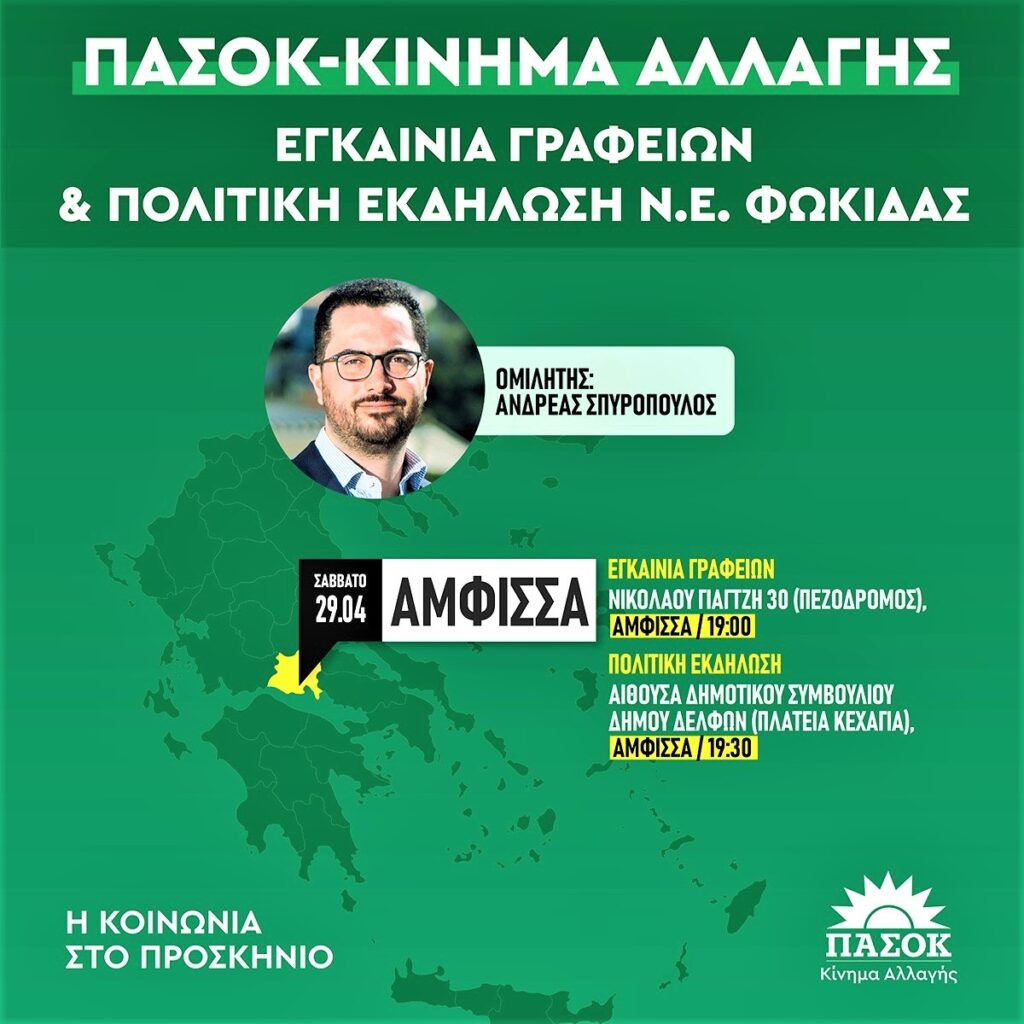Σήμερα τα εγκαίνια γραφείων του ΠΑΣΟΚ στην Άμφισσα – Ομιλία του Γραμματέα ΚΠ Επιτροπής Ανδρ. Σπυρόπουλου ΠΟΛΙΤΙΚΑ Από doridanews Στις Απρ 29, 2023 Share - Διαφήμιση -Χρόνος ανάγνωσης: 1 λεπτό Συνεχίστε να διαβάσετε- Διαφήμιση - Share
