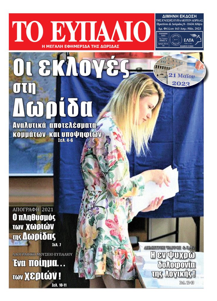 Με αναλυτικούς πίνακες και ρεπορτάζ για τα αποτελέσματα των εκλογών της 21ης Μαΐου, σε κόμματα και υποψήφιους στη Δωρίδα, κυκλοφόρησε το νέο τεύχος της εφημερίδας “ΤΟ ΕΥΠΑΛΙΟ”.