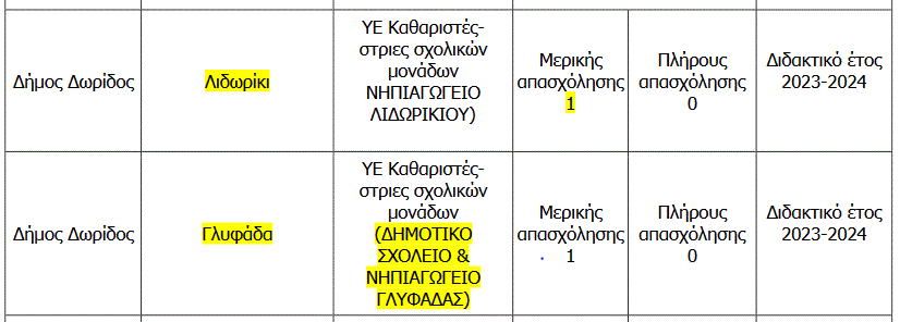 Πρόσληψη 6 ατόμων από το Δήμο Δωρίδας για την καθαριότητα σχολικών μονάδων