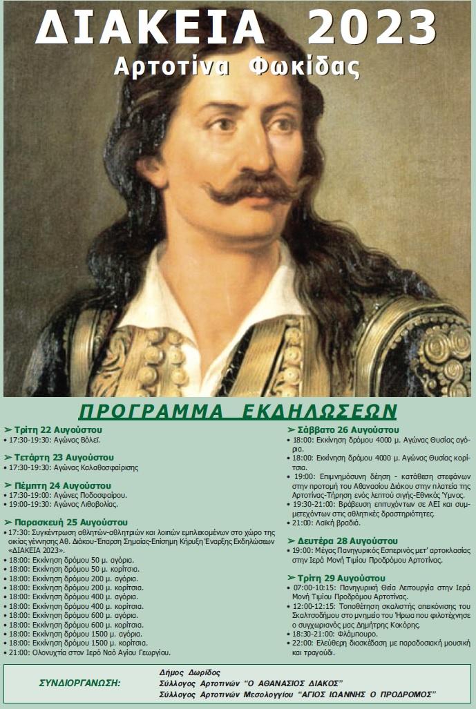 Πρόγραμμα εκδηλώσεων “Διάκεια 2023” στην Αρτοτίνα