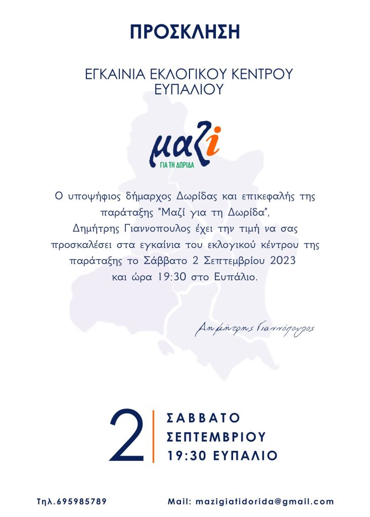 “Μαζί για τη Δωρίδα” : Εγκαίνια εκλογικού Κέντρου