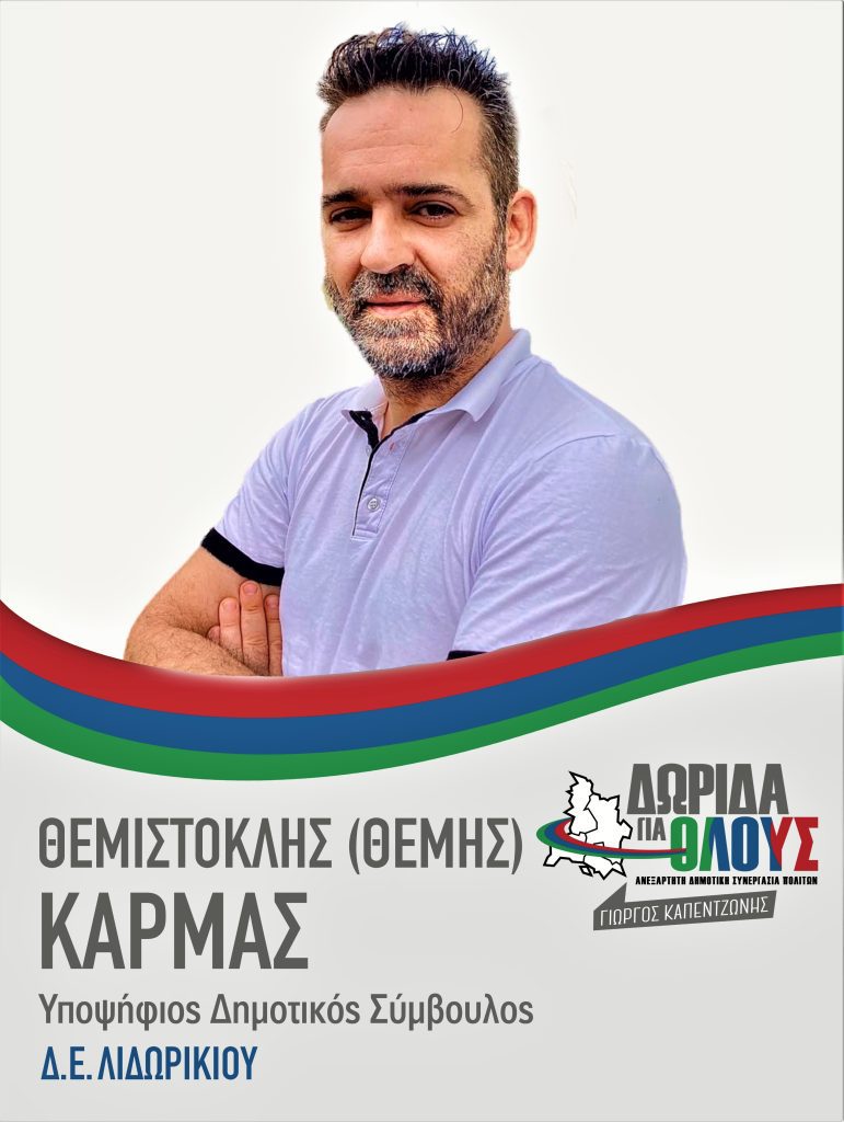Την υποψηφιότητα του Θεμιστοκλή (Θέμη) Κάρμα στις δημοτικές εκλογές Οκτωβρίου, στη Δημοτική Ενότητα Λιδωρικίου ανακοίνωσε ο συνδυασμός “Δωρίδα για Όλους”.