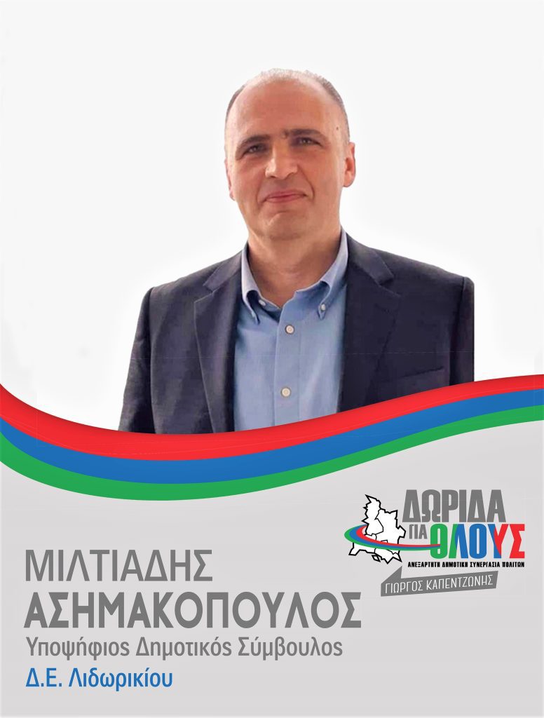 Την υποψηφιότητα του Μιλτιάδη Ασημακόπουλου στις δημοτικές εκλογές του Οκτωβρίου 2023 στη Δημοτική Ενότητα Λιδωρικίου ανακοίνωσε ο συνδυασμός “Δωρίδα για Όλους” .