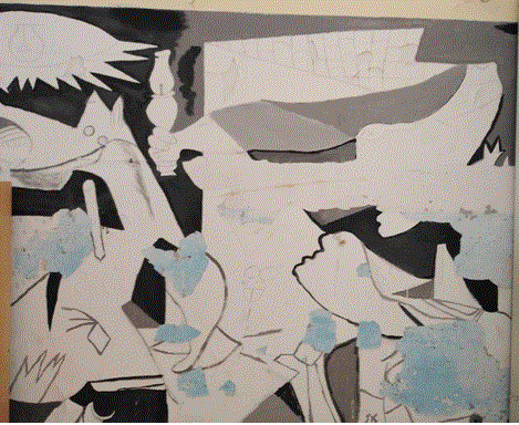 6. Η υπέροχη Γκουέρνικα που ζωγράφισαν τα παιδιά με την άξια καθηγήτριά τους κ. Λογοθέτη καταστρέφεται από την υγρασία. Καμιά ενέργεια για να διορθωθεί η αιτία που την προκαλεί.