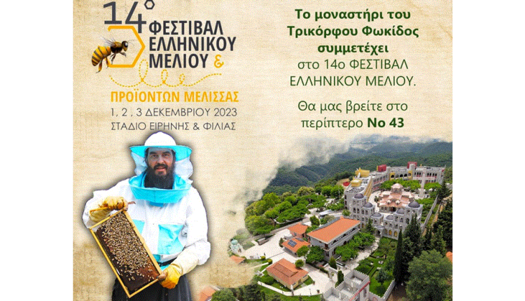 Το μοναστήρι του Τρικόρφου Φωκίδος συμμετέχει στο 14ο Φεστιβάλ Ελληνικού μελιού που θα διεξαχθεί 1,2,3 Δεκεμβρίου 2023 στο Στάδιο Ειρήνης και Φιλίας, υπό την Αιγίδα του Υπουργείου Αγροτικής Ανάπτυξης και Τροφίμων.