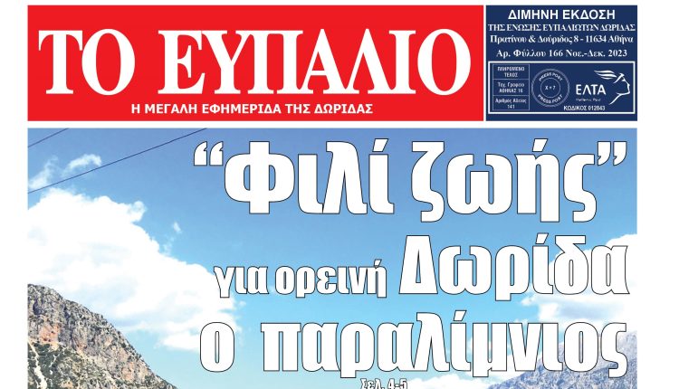 Με εκτενές και πολύ ενδιαφέρων ρεπορτάζ για την αναπτυξιακή προοπτική της Δωρίδας που σηματοδοτεί η κατασκευή του παραλίμνιου της λίμνης του Μόρνου κυκλοφόρησε το νέο τεύχος της εφημερίδας “Το Ευπάλιο”.