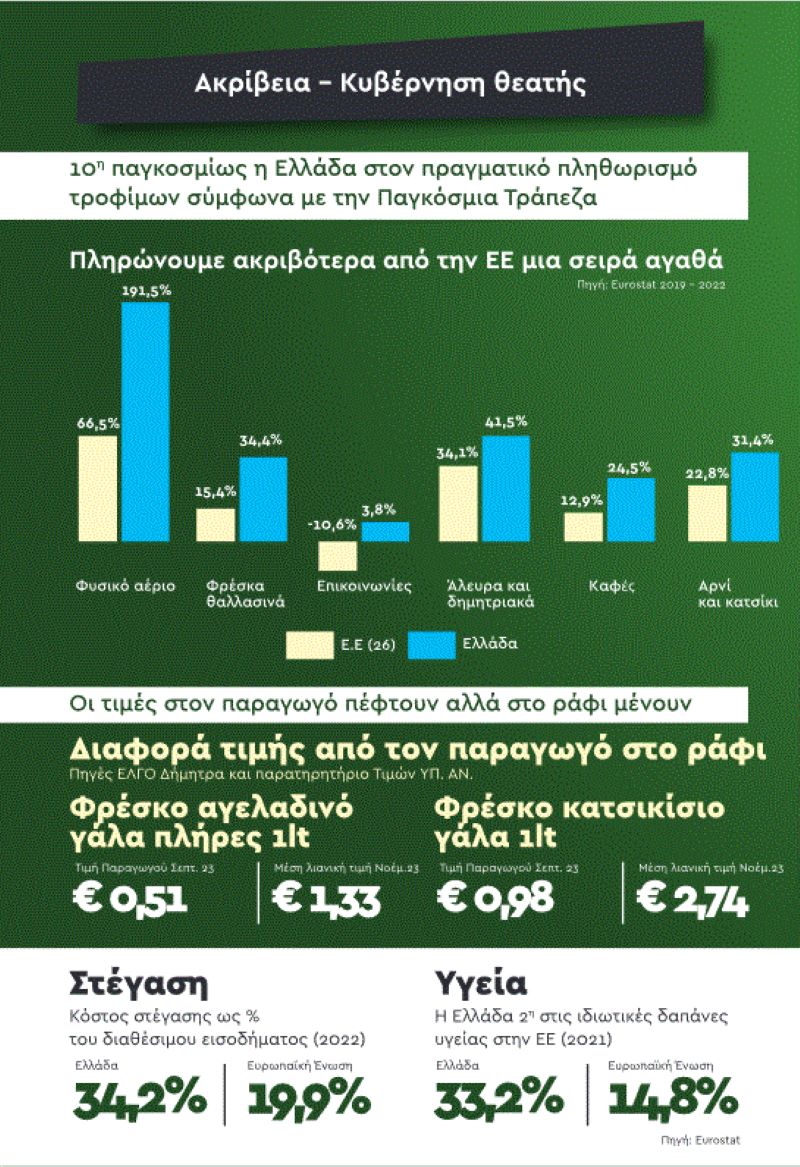 Οι τιμές που συναντάς στο ράφι, τα έξοδα του μηνιαίου οικογενειακού προϋπολογισμού που αιφνιδιάζουν, ο μισθός που δεν επαρκεί, είναι αποτέλεσμα μιας αρνητικής πρωτιάς και μιας λανθασμένης πολιτικής.