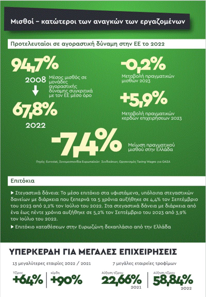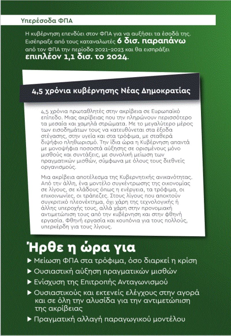 Η κυβέρνηση έχει καταστήσει τον πληθωρισμό σε βασικό όργανο οικονομικής πολιτικής. Μια πολιτική, που βασίζεται στα υπερέσοδα από έμμεσους φόρους, που πρωτίστως επιβαρύνουν τους πιο αδύναμους, επιστρέφοντας στη συνέχεια ψίχουλα στην κοινωνία με τα «αγιοβασιλιάτικα καλάθια» και τα pass.