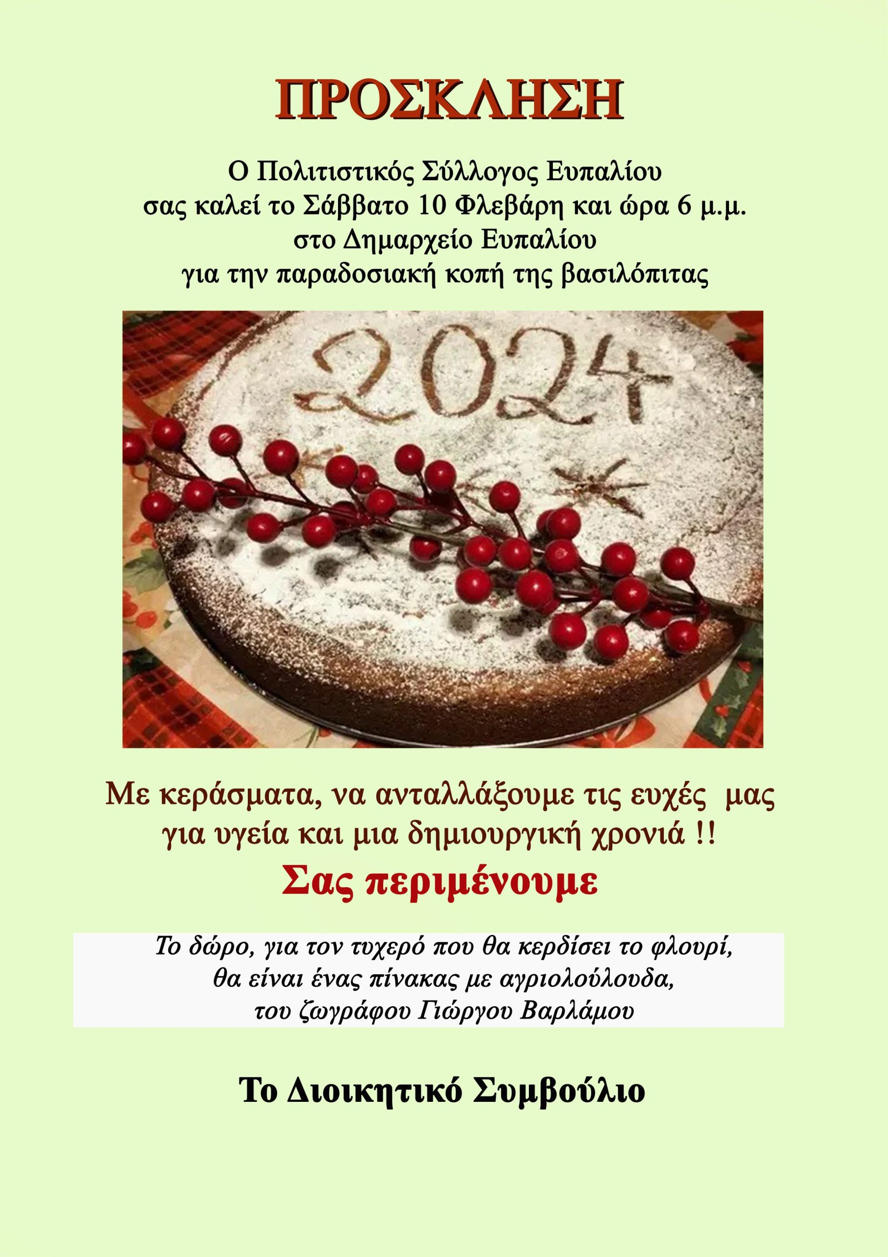 Κοπή πίτας 2024 του Πολιτιστικού Συλλόγου Ευπαλίου
