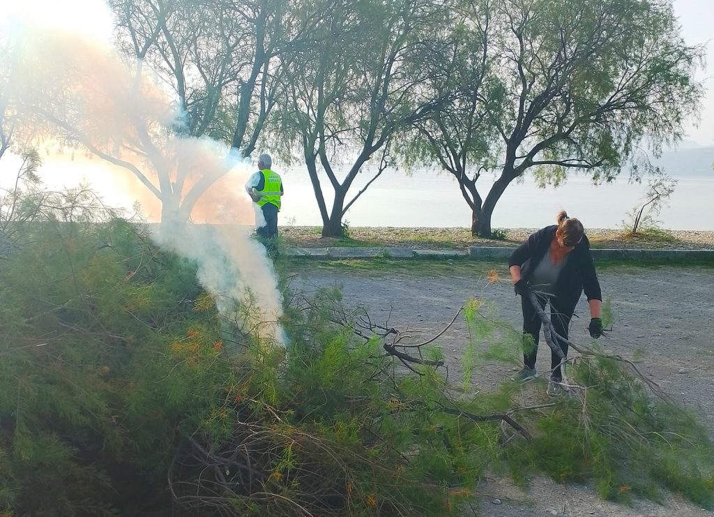 Όπως μας ενημερώνει ο πρόεδρος του Μοναστηρακίου Μένιος Τσιγάρας σε μια γενική προσπάθεια πολιτών, εθελοντών και εργατών του Δήμου κλάδεψαν αρμυρίκια, καθάρισαν την ακτή, έκαψαν ξερά και άλλα χόρτα.