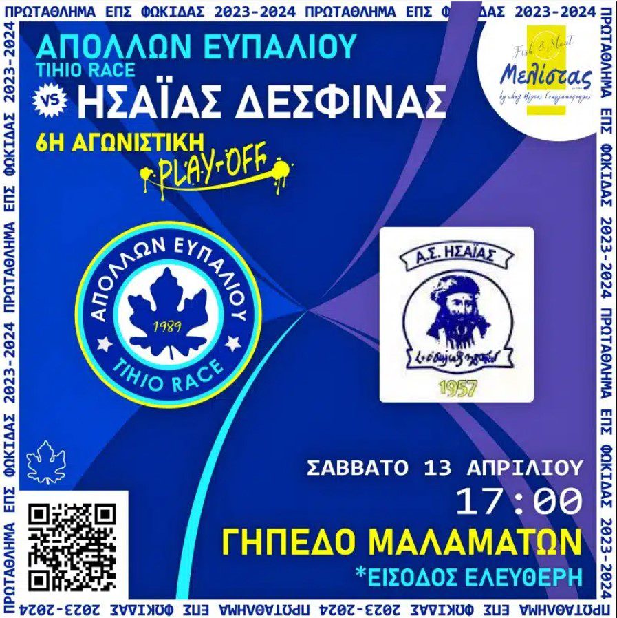 Με τον τελευταίο αγώνα των play of που δίνει απέναντι στον Ησαϊα Δεσφίνας ολοκληρώνονται οι αγωνιστικές του πρωταθλήματος ΕΠΣ Φωκίδας 2023-2024 και ασχέτως αποτελέσματος έχει ήδη ανακηρυχτεί πρωταθλητής.