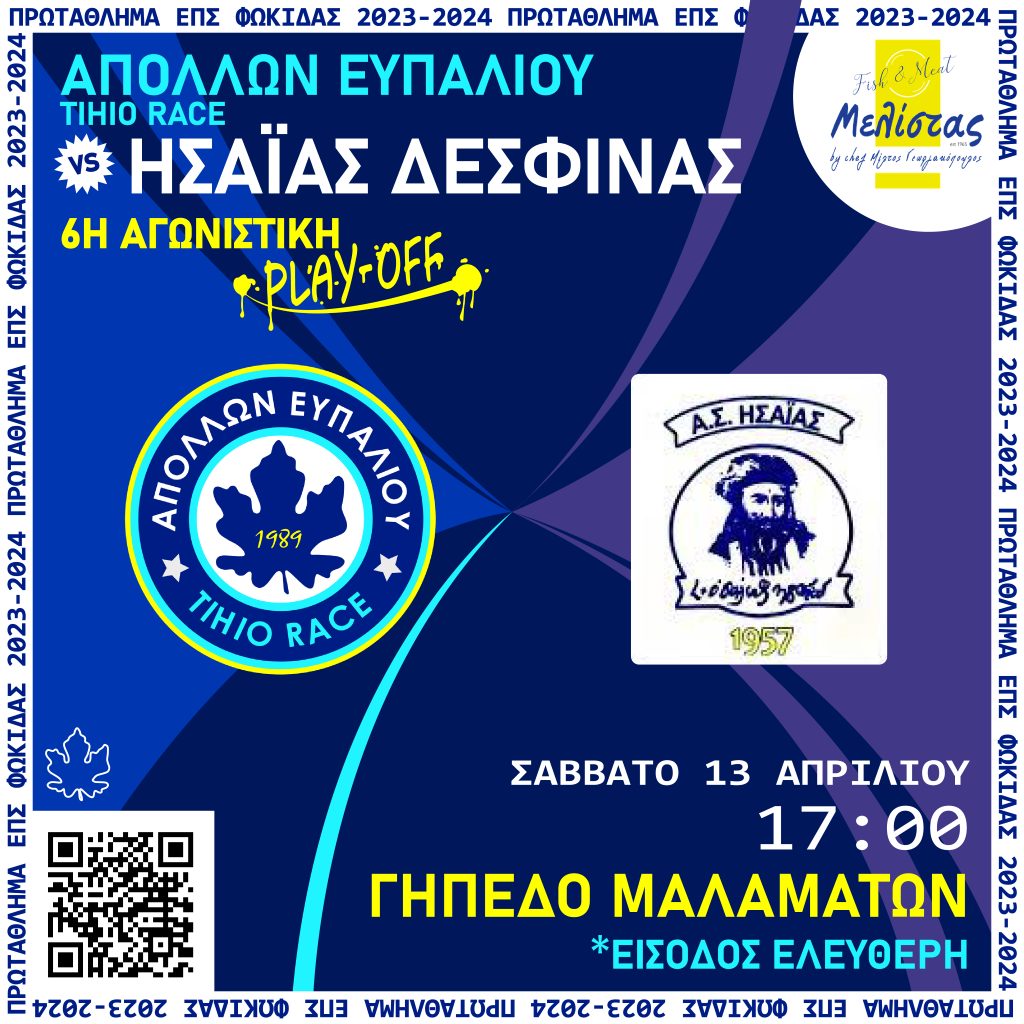 Στο τέλος της αναμέτρησης θα γίνει από την ΕΠΣ Φωκίδας η απονομή του κυπέλλου στην ομάδα μας και στους πρωταγωνιστές της,το τεχνικό επιτελείο και τους ποδοσφαιριστές μας.