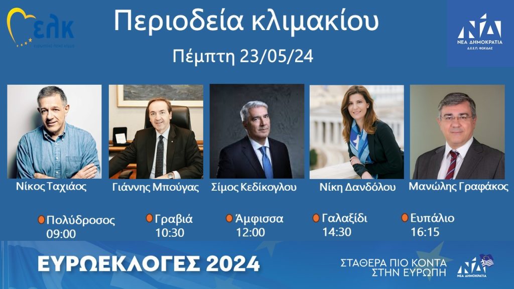 ΕΥΡΩΕΚΛΟΓΕΣ 2024:Ποια μέρη της Φωκίδας θα επισκεφθεί κλιμάκιο στελεχών της Νέας Δημοκρατίας την Πέμπτη ΠΟΛΙΤΙΚΑ Από doridanews Στις Μάι 20, 2024 Share - Διαφήμιση -Χρόνος ανάγνωσης: 1 λεπτό Συνεχίστε να διαβάσετε- Διαφήμιση - Share
