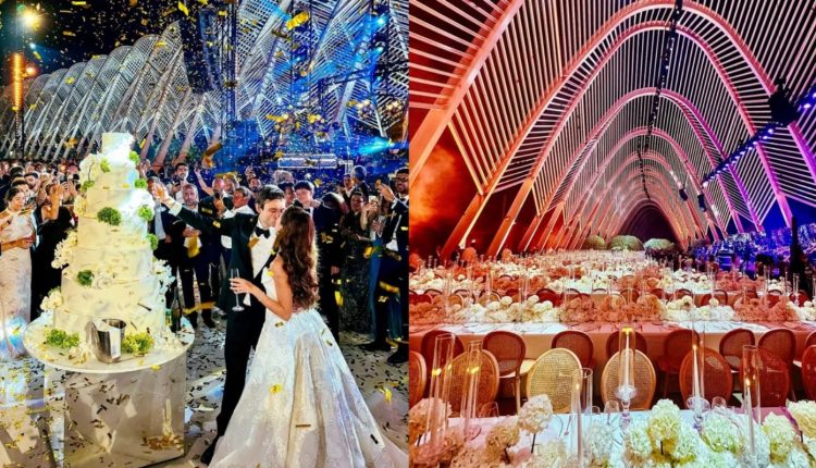 Στις εικόνες που έχουν κυκλοφορήσει μέσω Instagram, το ευτυχισμένο ζευγάρι καταγράφεται τόσο στη διάρκεια της γαμήλιας τελετής όσο και στο μεγάλο πάρτι που ακολούθησε, στον ειδικά διαμορφωμένο χώρο κάτω από την αψίδα Καλατράβα, στην είσοδο του ΟΑΚΑ.