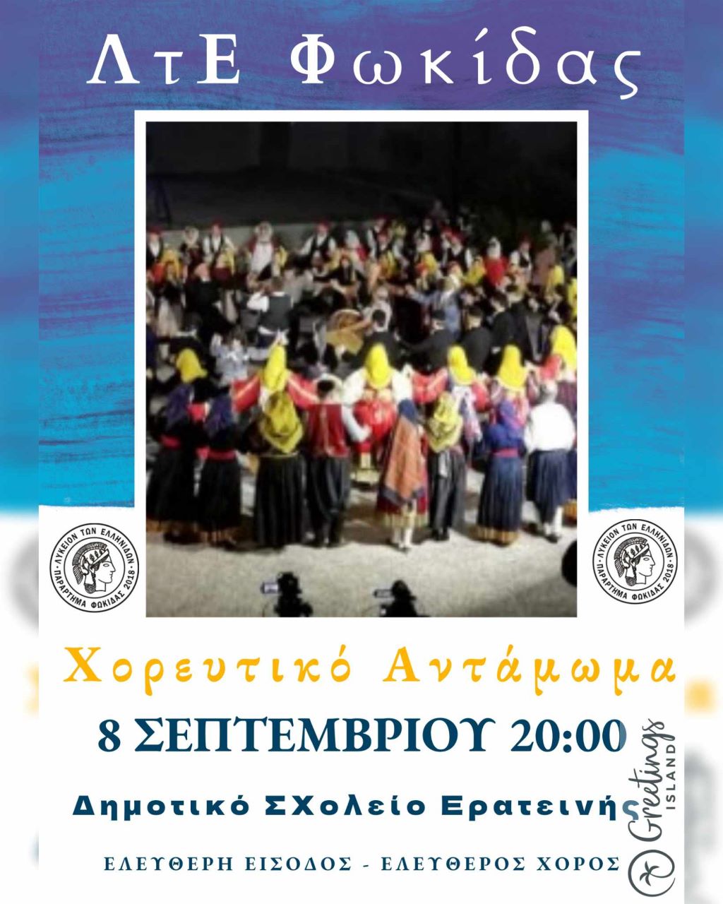 20:00 – 23:50 Χορευτικό Αντάμωμα με ΛτΕ Λαμίας, ΛτΕ Λιβαδειάς, Σύλλογος Κρητων Ευβοίας και ΛτΕ Φωκίδας