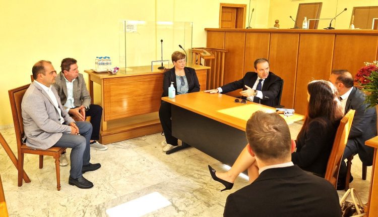 Στη συνέχεια, ο I. Μπούγας μετέβη στο Πρωτοδικείο Ορεστιάδας, όπου συναντήθηκε με την Πρόεδρο του Δικηγορικού Συλλόγου Ορεστιάδας, Άννα Μεμετζή, εκπροσώπους δικαστικών λειτουργών και δικαστικών υπαλλήλων και συζήτησαν για τα πρακτικά ζητήματα εφαρμογής του Δικαστικού Χάρτη και για τις νομοθετικές πρωτοβουλίες που σχεδιάζει το Υπουργείο Δικαιοσύνης.